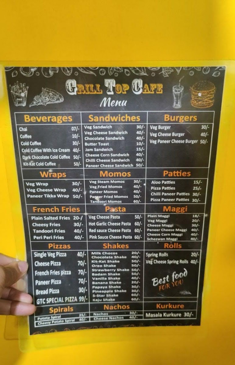 Welcome to Grill Top Cafe, a charming destination nestled in Bhavna Nagar, Bhopal. This cafe is a haven for lovers of casual dining with its delightful menu designed to please every palate.